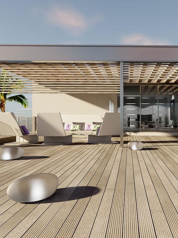 • Pour ouvrages extérieurs verticaux (bardages, claustras…) et horizontaux (terrasses…).