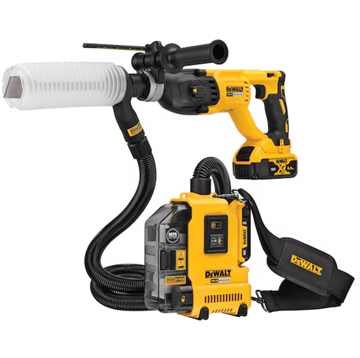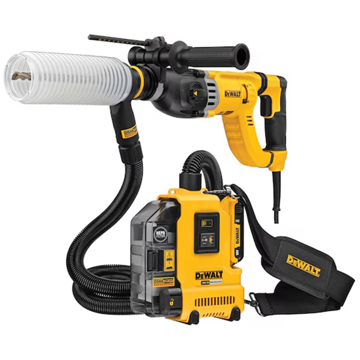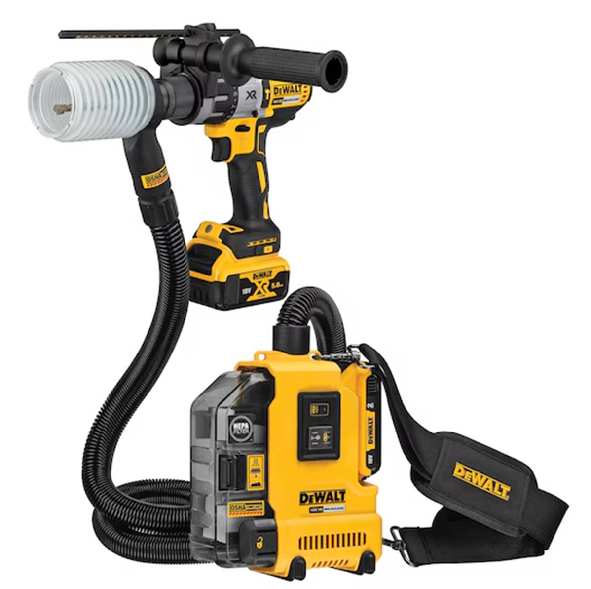 • L'aspirateur universel DEWALT est une solution portable sans fil, indépendante et autonome pour aspirer le béton, le bois et d'autres sources de poussière sur vos chantiers. Alimenté par un moteur sans charbons, le DWH161 peut être utilisé avec les batteries XR 18V et XR FLEXVOLT 54V ainsi que sur toutes autres marques d'outils électroportatifs pour une polyvalence maximale sur les chantiers les plus difficiles. Équipé d'un transmetteur Wireless Tool Control (WTC) permettant à l'aspirateur d'être couplé avec un autre dispositif WTC, tel qu'un perforateur, pour une activation et une mise hors tension automatique avec l'outil.