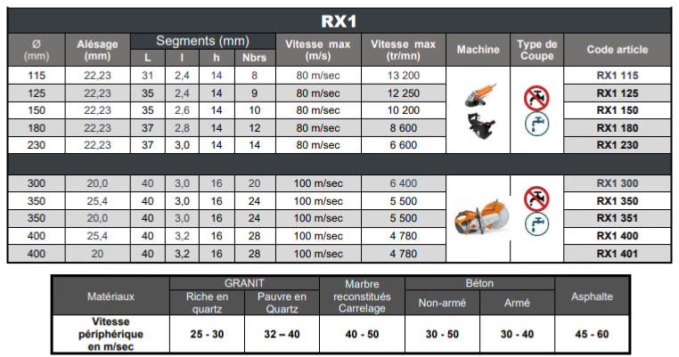 DISQUE RX1 POUR DECOUPEUSE THERMIQUE
