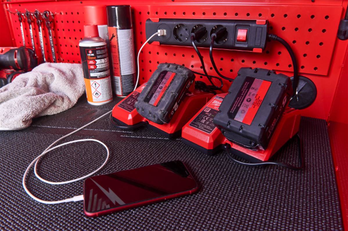 La barre d'alimentation magnétique permet de charger les batteries directement sur le meuble.