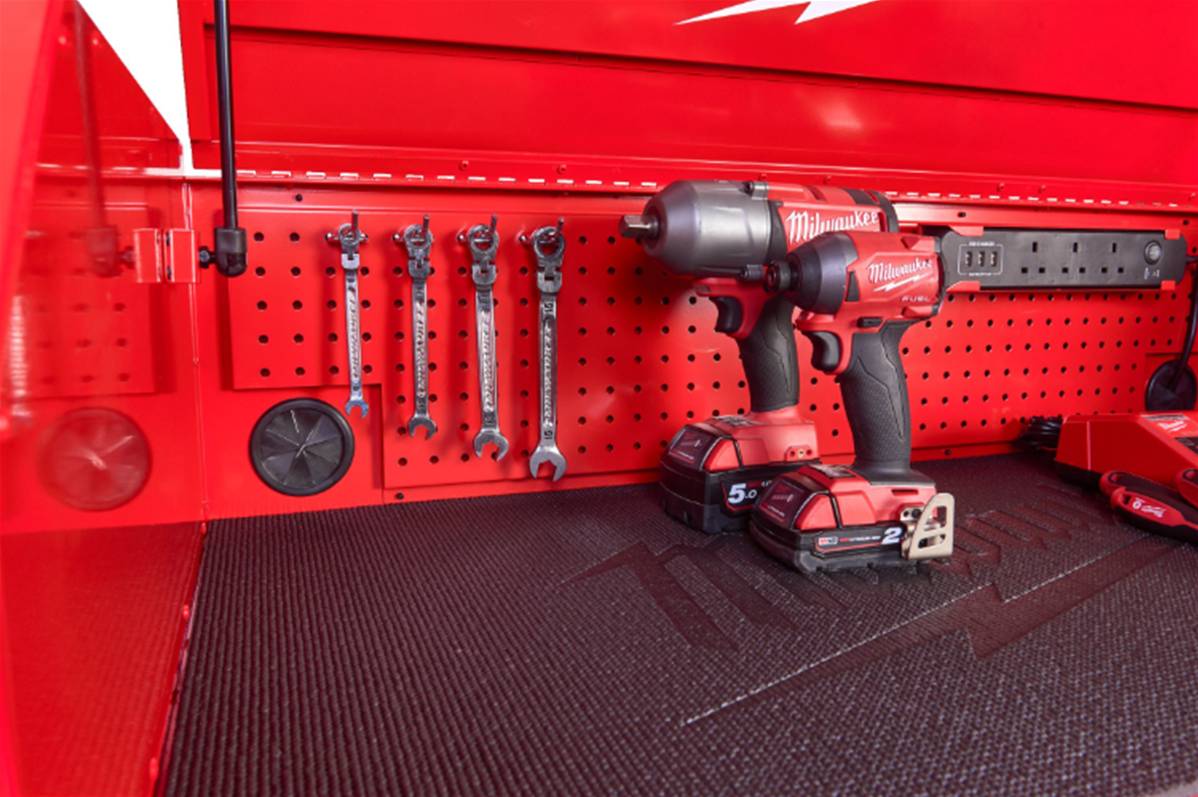 Organisateur d'outils électriques dans le tiroir du bas.