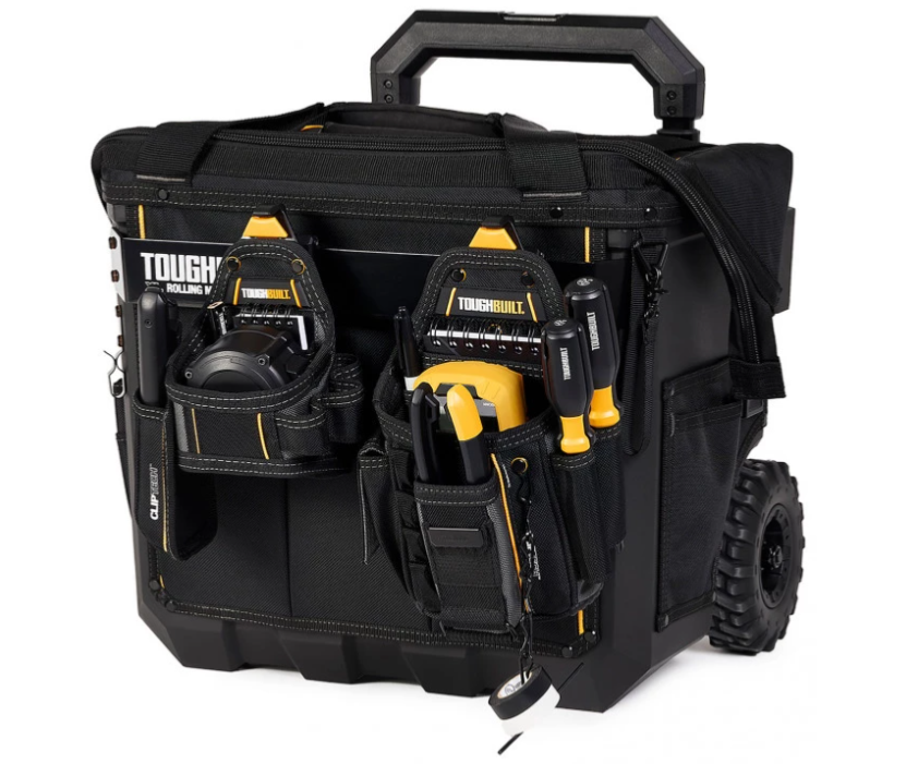 Sac à roulettes TOUGHBUILT TB-CT-61-18 XL avec grande ouverture brevetée 38 cm, compatibilité ClipTech™, roues tout-terrain et volume 97 L pour un transport robuste et pratique des outils.